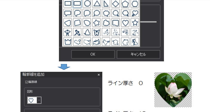 *編集機能使用 *図形を選ぶだけで瞬時に切り抜き *図形40種類 *背景透明化 *輪郭線の色付け可能 |